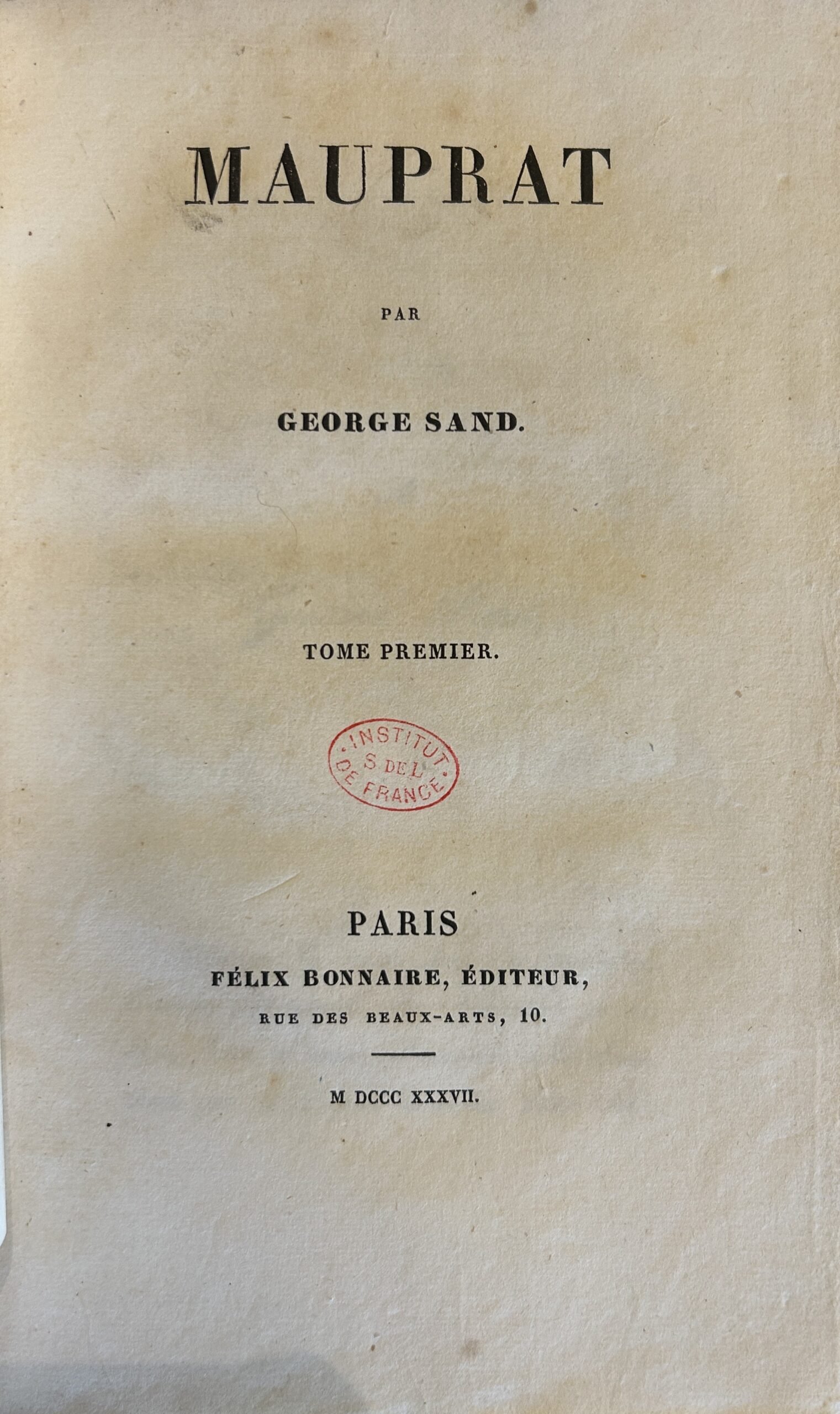 Le texte paru dans la Revue des Deux Mondes est repris à l’identique dans une édition en deux volumes in-8 chez Felix Bonnaire, mise en vente à partir du 7 août 1837.
