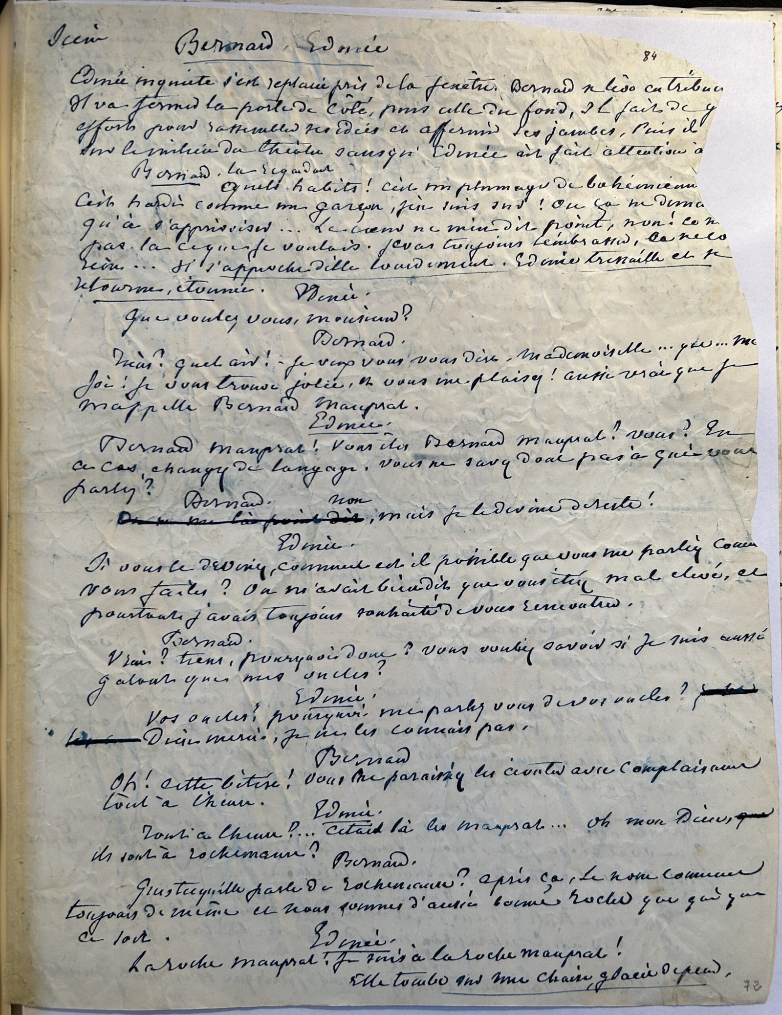 Mauprat : versions multiples autographes. Bibliothèque de l’Institut de France, Ms. Lovenjoul E 846, f 84r-84v.
