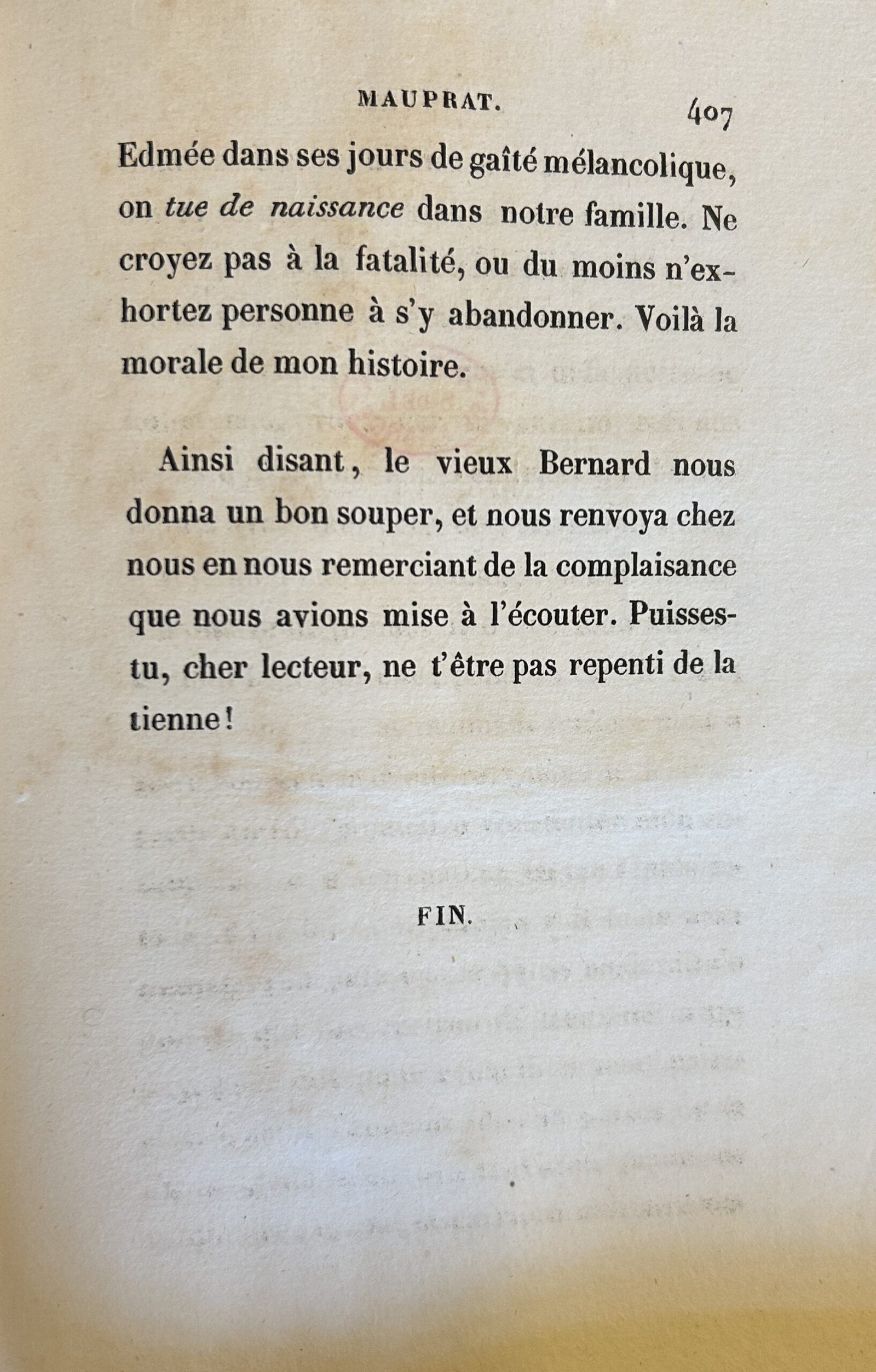 Mauprat, éd. Félix Bonnaire, 1837. Bibliothèque de l’Institut de France, Lovenjoul E 2945, p. 406-407.