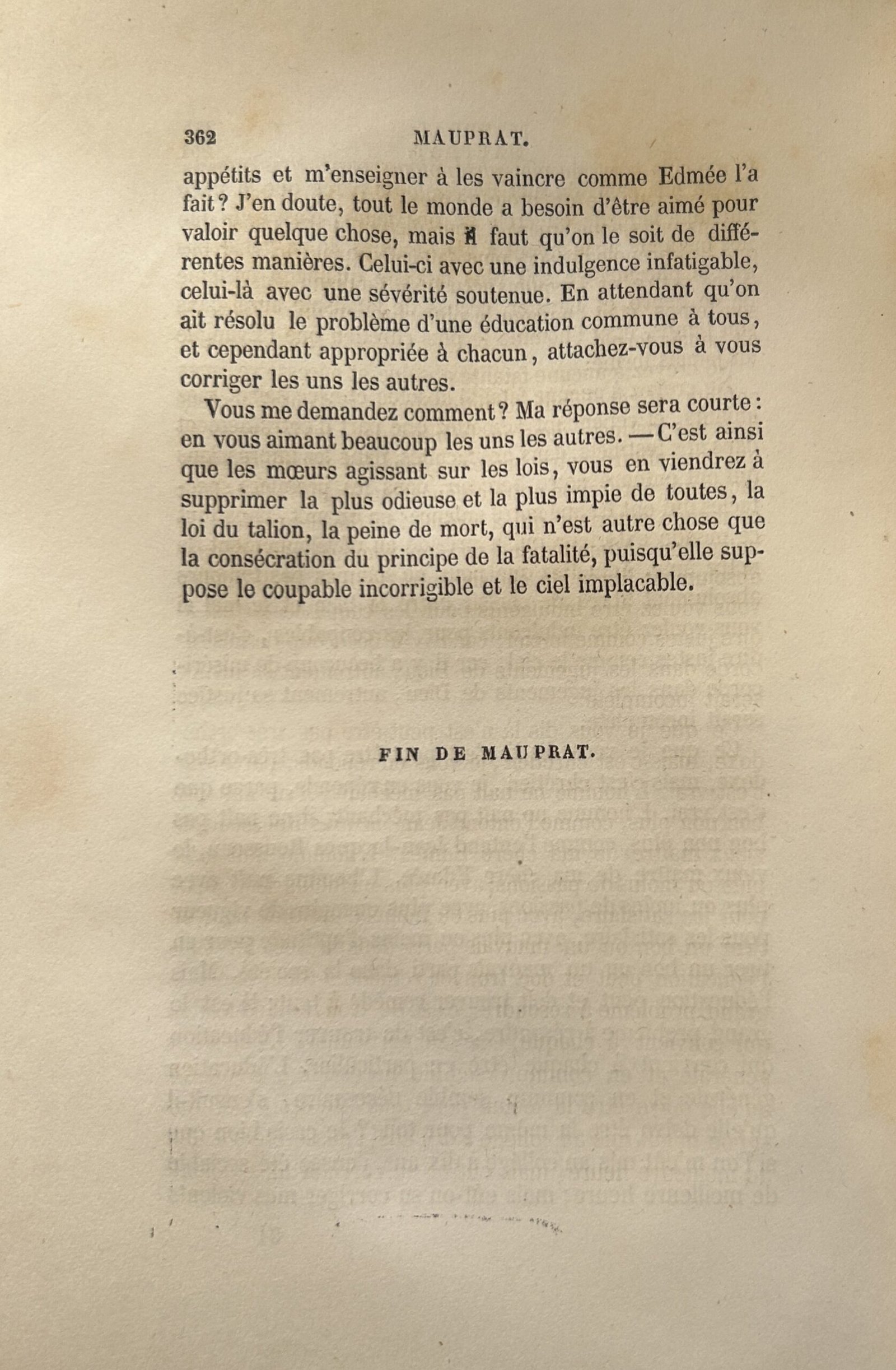 Mauprat , éd. Jules Hetzel et Cie, 1852. Bibliothèque de l’Institut de France, Lovenjoul E 2948, p. 360-362.