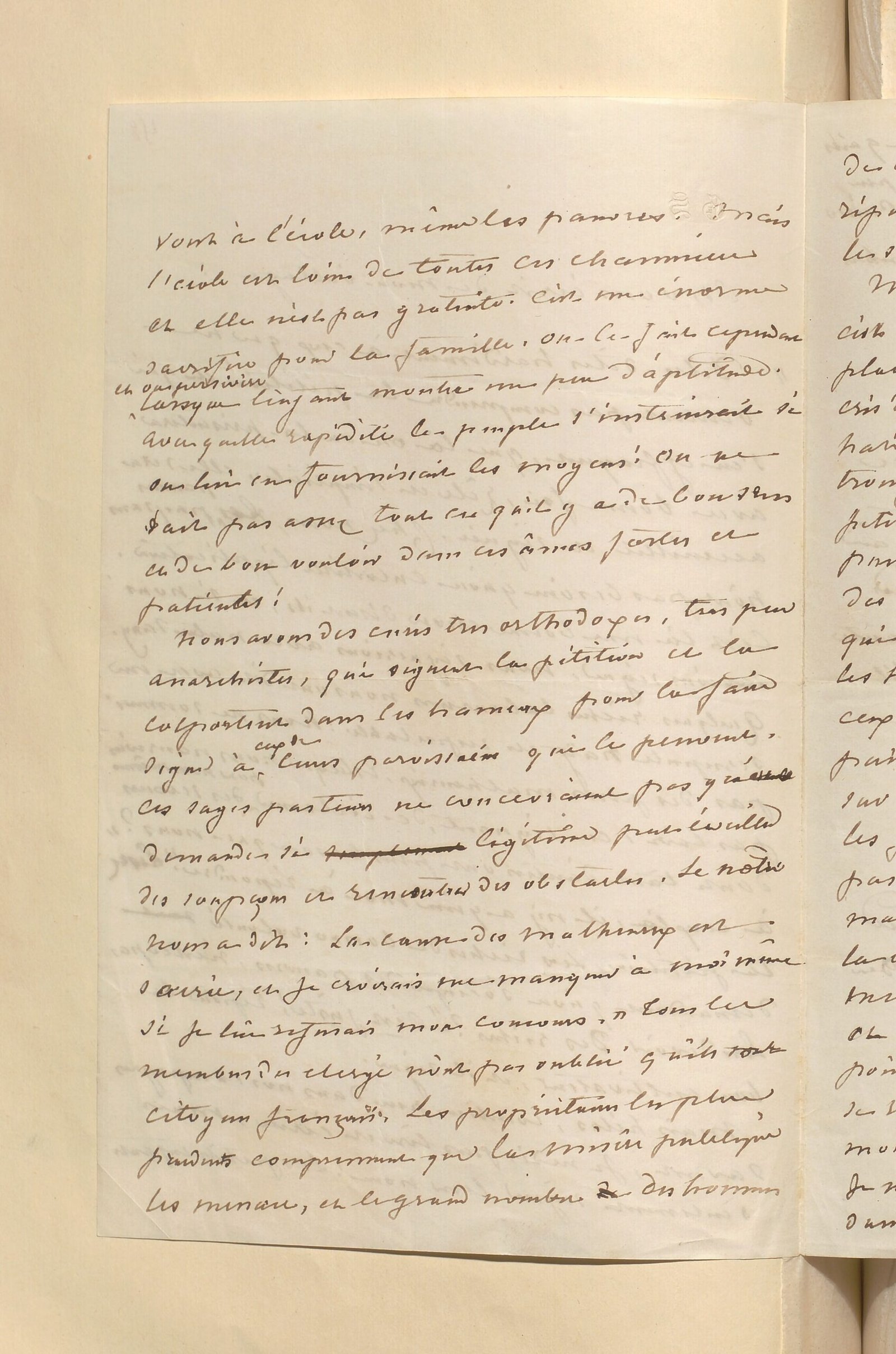 Mais, hélas, combien peu dans nos campagnes savent, je ne dis pas lire et écrire, mais seulement signer leur nom ! Les petits enfants vont à l’école, même les pauvres. Mais l’école est loin de toutes ces chaumières et elle n’est pas gratuite. C’est un énorme sacrifice pour la famille. On le fait cependant et on persévère lorsque l’enfant montre un peu d’aptitude. Avec quelle rapidité le peuple s’instruirait si on lui en fournissait les moyens ! On ne sait pas assez tout ce qu’il y a de bon sens et de bon vouloir dans ces âmes fortes et patientes !