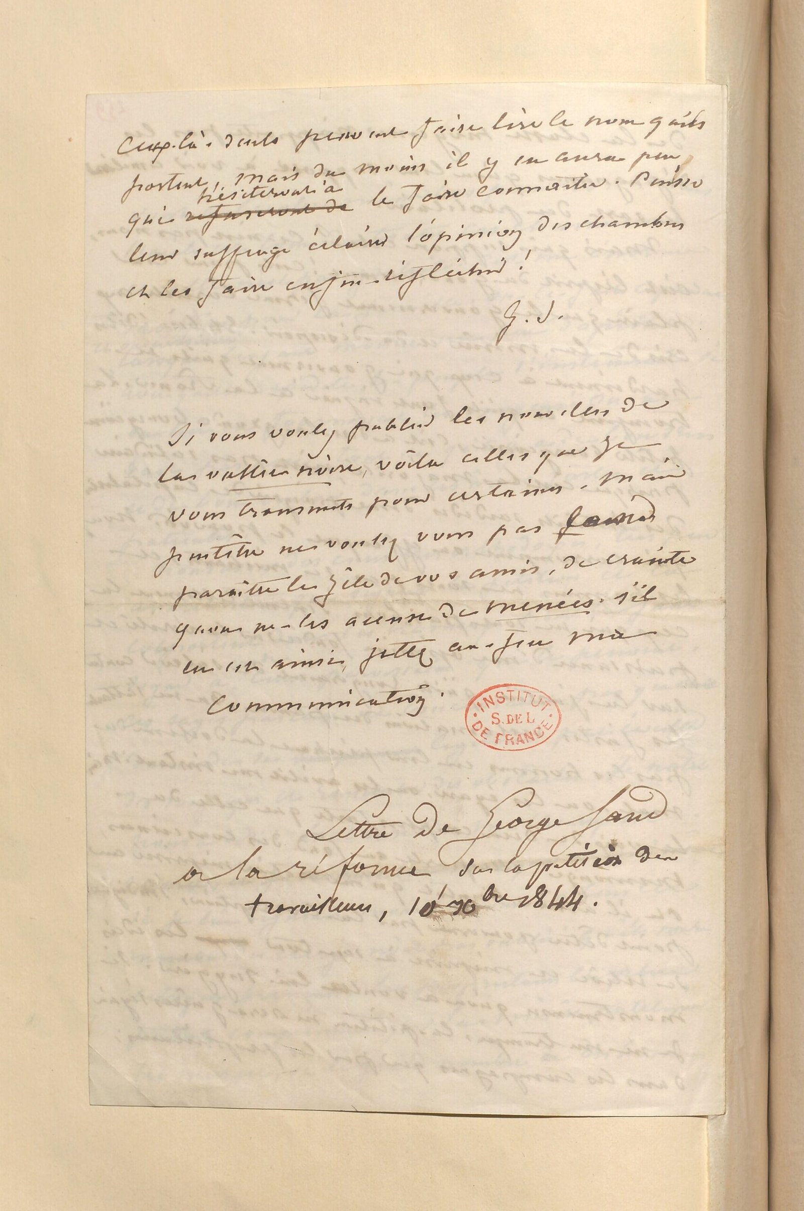 Correction de la main de George Sand : « qui refuseront de » devenu « qui hésiteront à ».