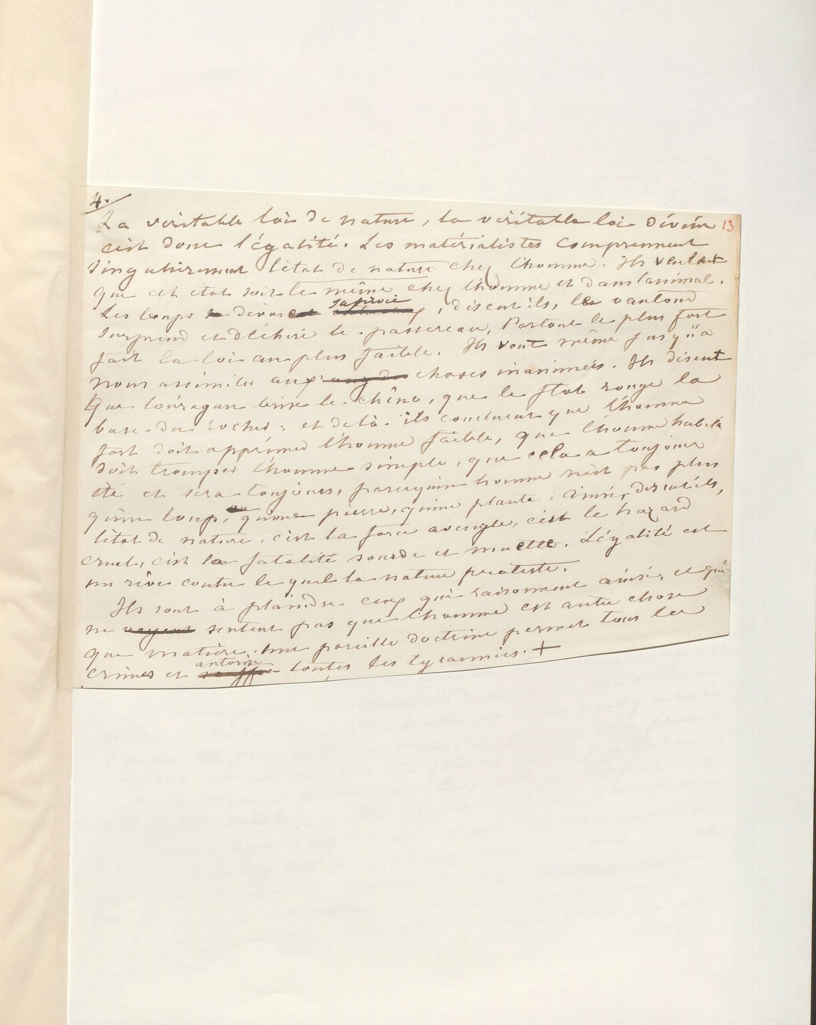 Ils sont à plaindre ceux qui raisonnent ainsi, et qui ne sentent pas que l’homme est autre chose que matière : une pareille doctrine permet tous les crimes et autorise toutes les tyrannies.